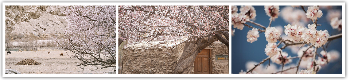 穿越【盤龍古道】,走過【幸福五號橋】就是炊煙、就是人家。就是杏花村。杏花村因為春起帕米爾的杏花而聞名。杏花花色又紅又白,胭脂萬點,花繁姿嬌。明明是嬌嬌嫩嫩的小花,但是始終在枝頭挺拔,顏色艷麗、姿態嫵媚。