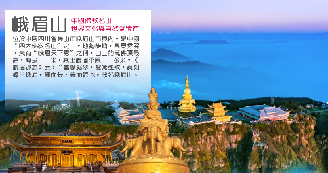 峨眉山【報國寺、伏虎寺(含電瓶車)】 / (約1H)樂山【樂山大佛(船遊)】 / (約2H)成都