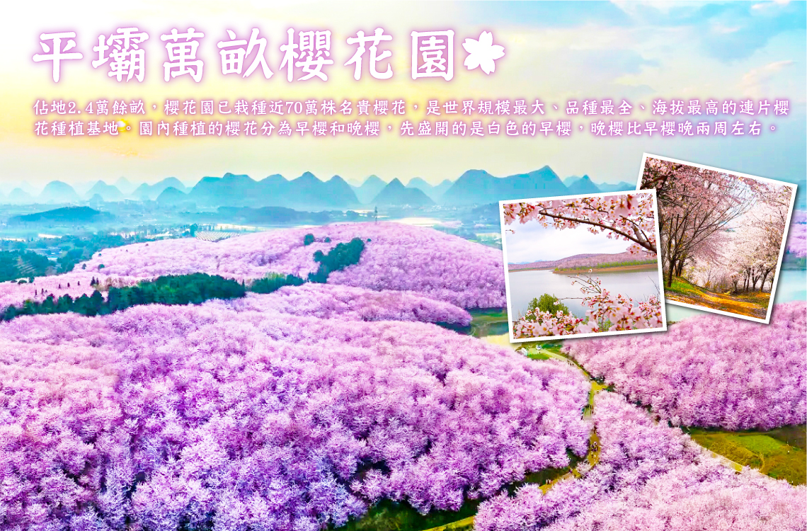 【貴州】位於中國西南部雲貴高原東部,是一個由西向東傾斜的高原,大部份地區海拔1000米左右。貴州地形極複雜,山高谷深,有千畝以上壩子(棗形地)300多個。貴州具有岩溶、瀑布為主的自然景觀和豐富多彩的民族風情。岩溶形成不同類型的石林,蔚為大觀。白水江、打幫河、霸陵河、王二河等有上千個瀑布,其中黃果樹瀑布居全國之首,其附近陡坡塘、滴水灘、沖坑等瀑布亦頗具氣勢。