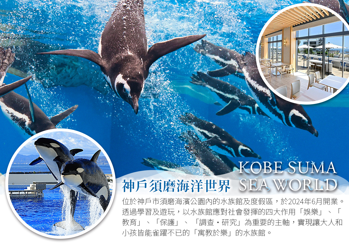 【神戶須磨海洋世界】位於日本兵庫縣的須磨區,是日本歷史最悠久的水族館之一。自1987年開館以來,憑藉其豐富多彩的海洋生物展覽和先進的設施,吸引了來自世界各地的遊客。無論您是親子家庭、戀人還是獨自旅行者,這裡都是您不可錯過的旅遊景點。園內擁有多達600種,總數超過13,000隻的海洋生物展示。從美麗的熱帶魚群,到優雅的海豚和鯨鯊,遊客可以在這裡觀賞到各種各樣的海洋生物,感受大海的無盡魅力。
