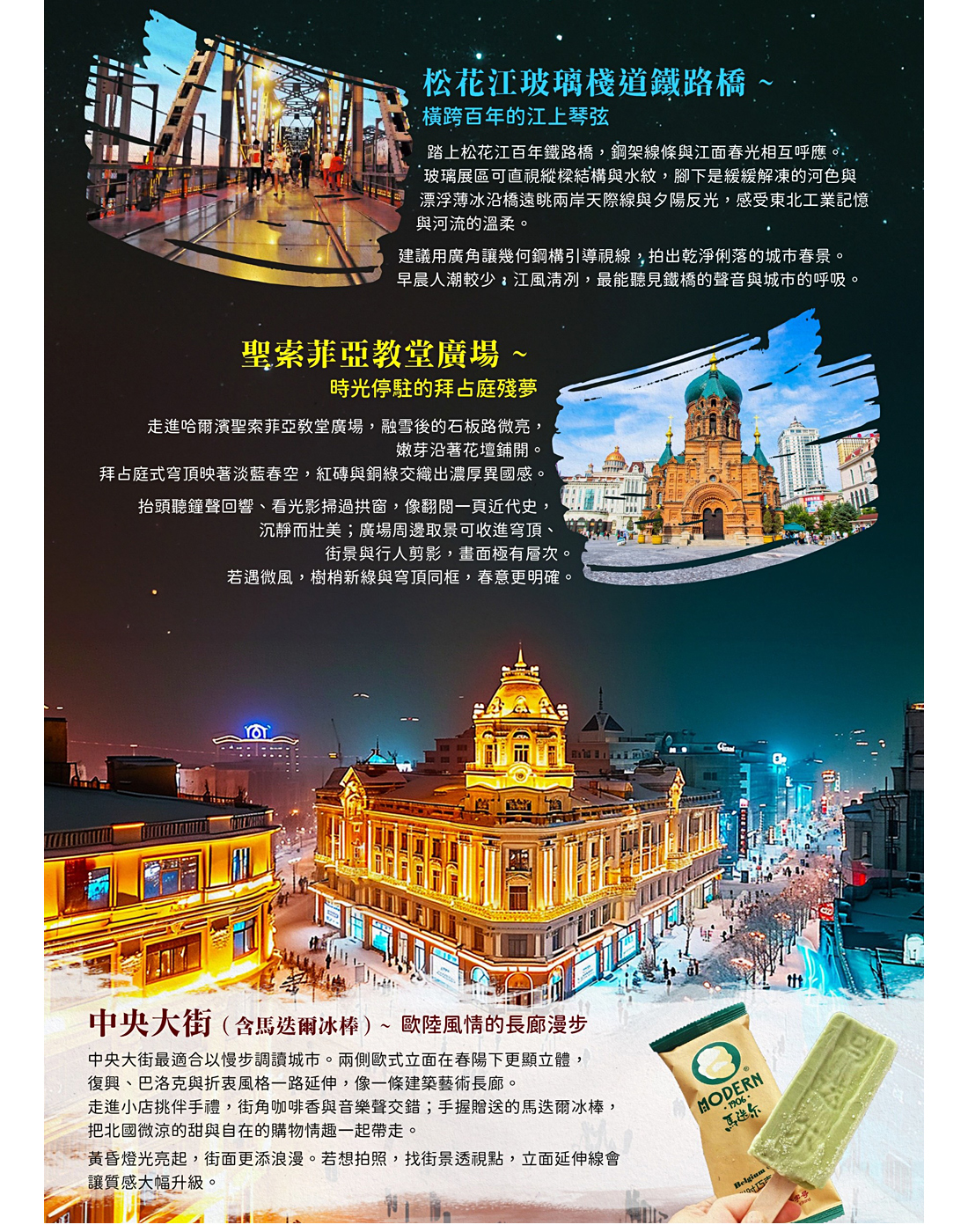 中蘇金街有名的南北一條路從五道街到一道街,步行街,兩邊都是飯店商店餐廳,最南端就是鐵路橋,有周恩來塑像,最北邊有熊貓和白熊的雕塑。除了各種旅遊紀念品和外貿服裝,還有大酒店和街頭雕塑:有唱搖滾的、有把手風琴跳舞的、有抬啤酒的,還有騎著駱駝彈馬頭琴的。金街上隨處可見俄羅斯店鋪和美女帥哥,充滿了俄羅斯風情,走在街上有一種身在俄羅斯的感覺,可以說是到滿洲裡來必逛的購物街,算得上是這裡的地標之一。