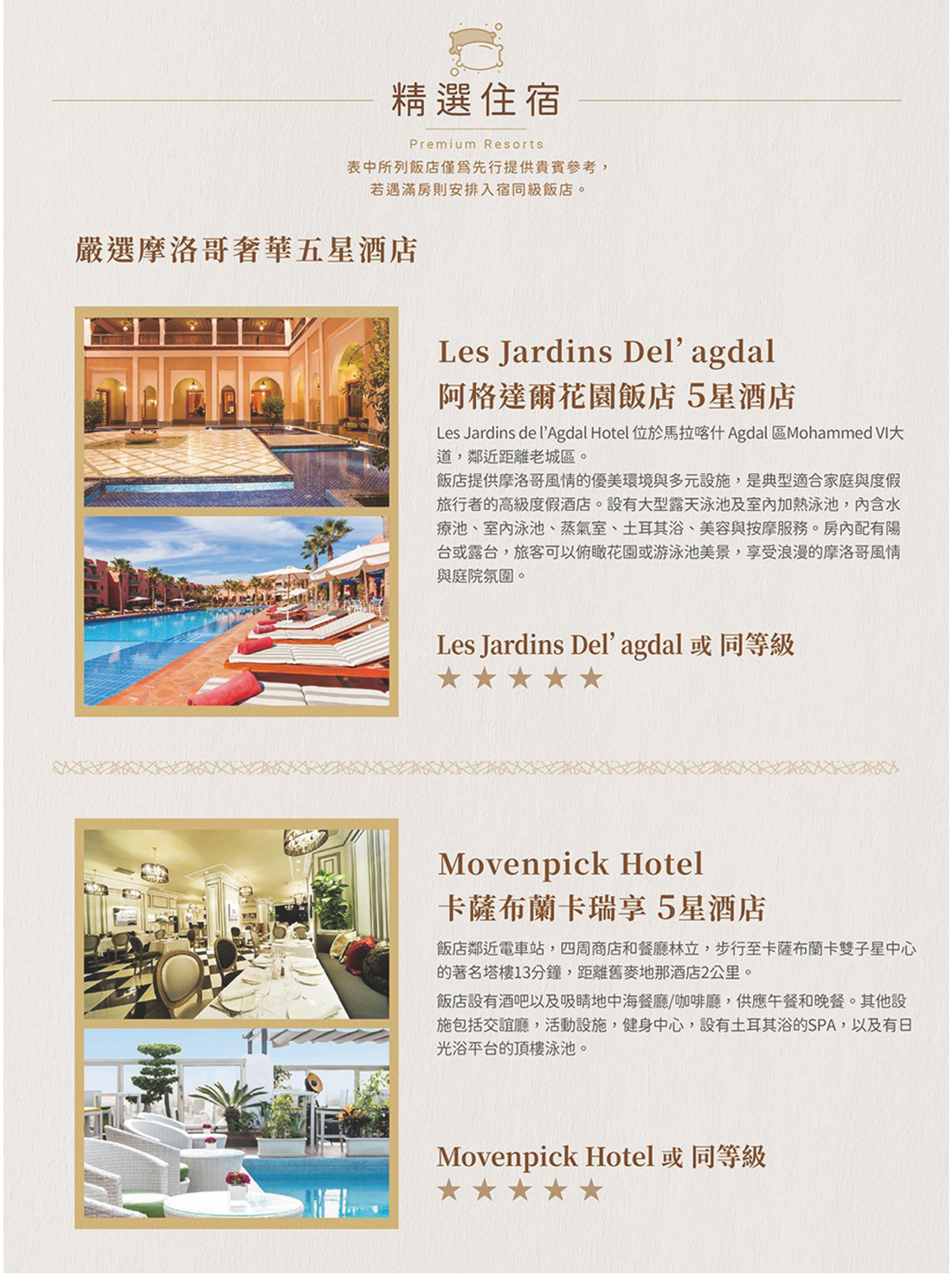 ◎菲斯王宮,占地廣大、規模宏偉也是典型的回教建築風格,有著拱門狀造型、色彩繽紛的瓷磚鑲嵌與拼貼圖案等,尤其是王宮前「七個大門、七個幸福」的銅雕大門,幾何線條圖案精雕得金碧輝煌。