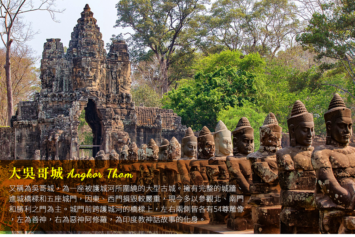 ● 探索大吳哥城神殿遺址群,包含南城門、巴戎廟、鬥象台、古代法院、巴本宮殿…等