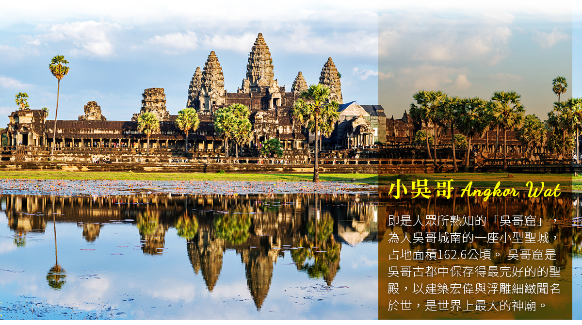 今日搭乘直飛客機前往世界七大奇景之一【吳哥窟】,吳哥窟位於柬埔寨北部的【暹粒省】。它曾長期淹沒於叢林中,直到1860年才由法國探險家根據中國古書『周達觀-真臘風土記』之記載,深入暹邏北部尋找而發現,吳哥窟遺址群總佔地200平方公里(長24公里、寬8公里),乃古高棉於吳哥古王朝全盛時期的不朽文明遺址,全城雕刻精美有『雕刻出來的皇城』美譽與埃及金字塔齊名為世界七大奇景。抵達暹粒國際機場後由領隊及海關人員協助辦理貴賓級禮遇快速通關。